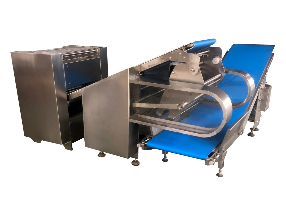 2、疊層機使面帶Z字型折疊,進一步豐富面帶網(wǎng)狀結構,提高面筋度,設備可根據(jù)客戶場地需求選擇不同的擺放形式。